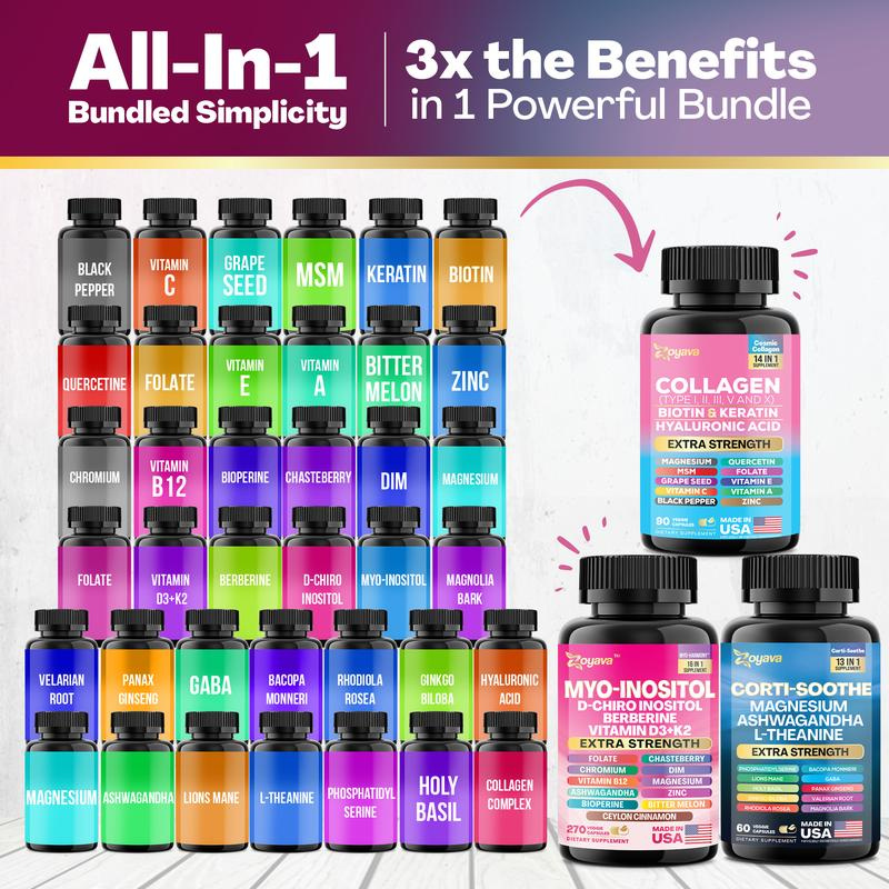If you're experiencing stress, hormonal imbalances, PCOS symptoms, sluggish metabolism, or brittle hair/nails, this supplement bundle is for you!